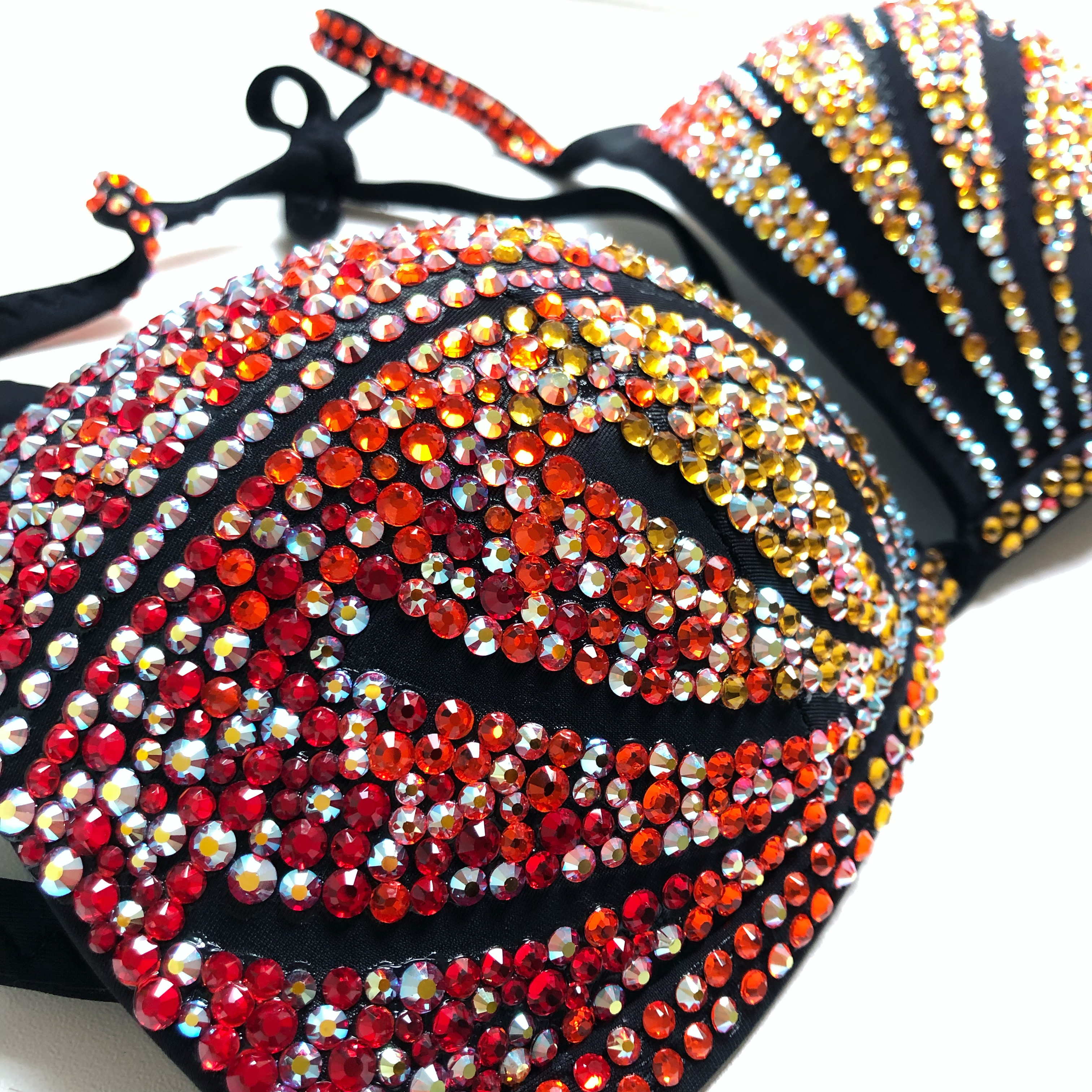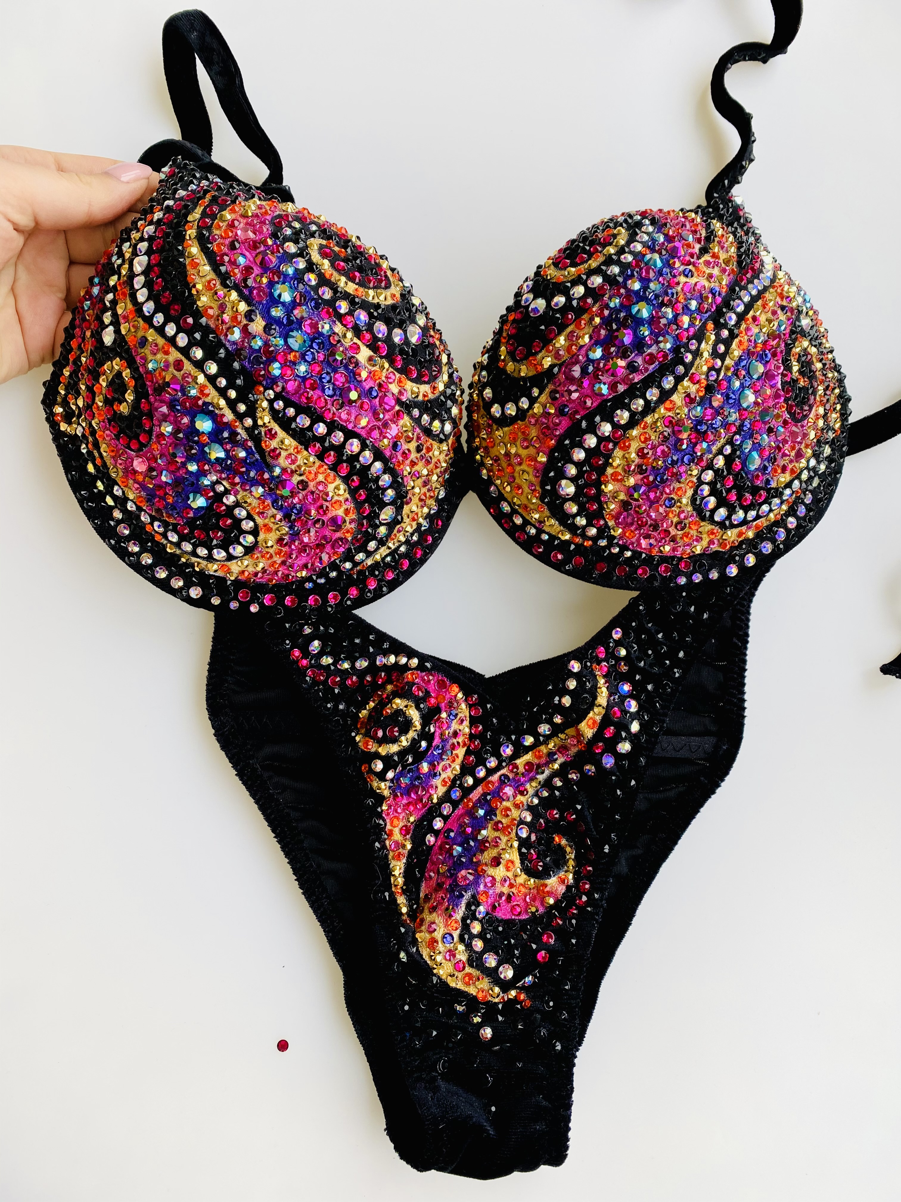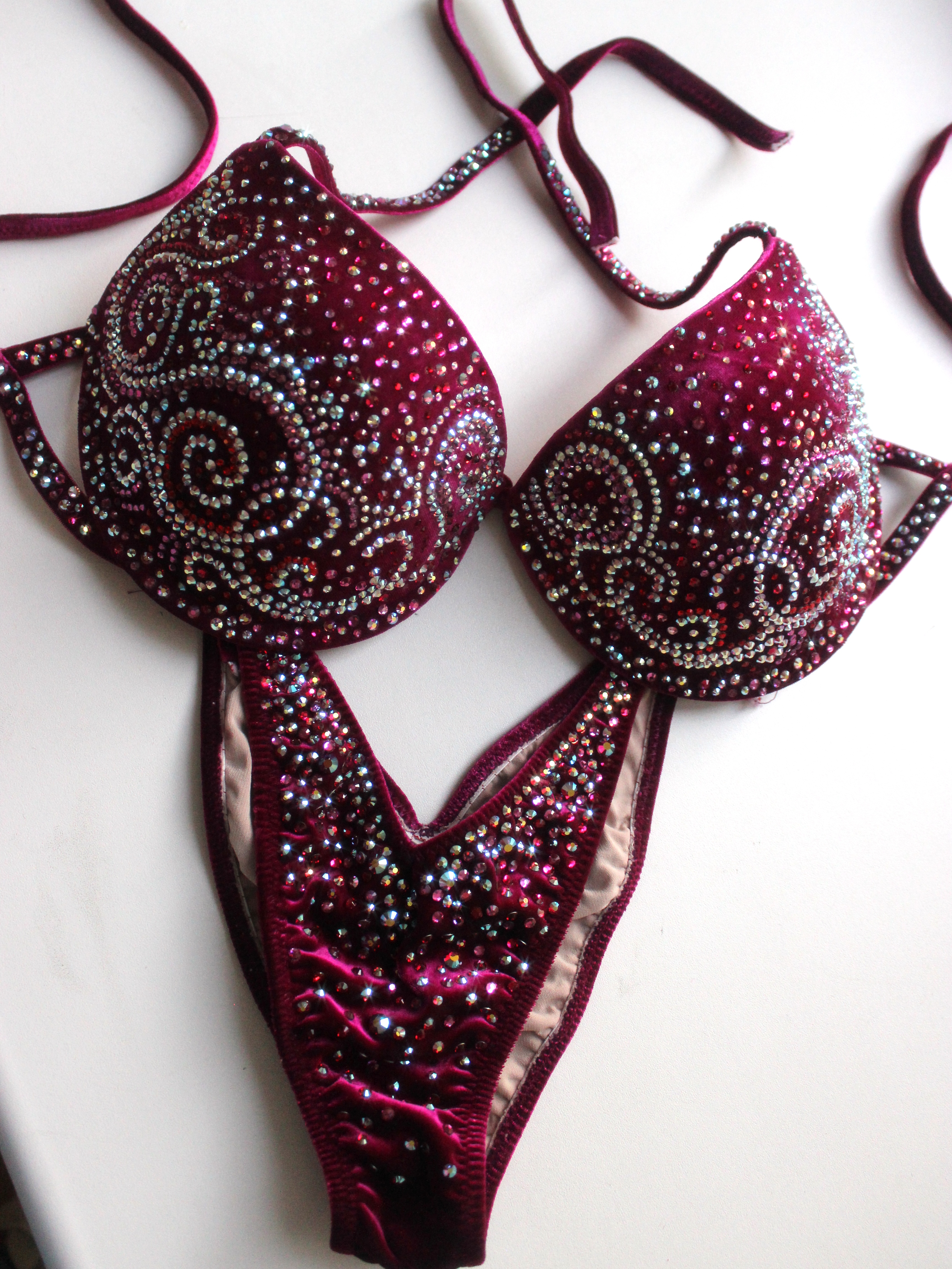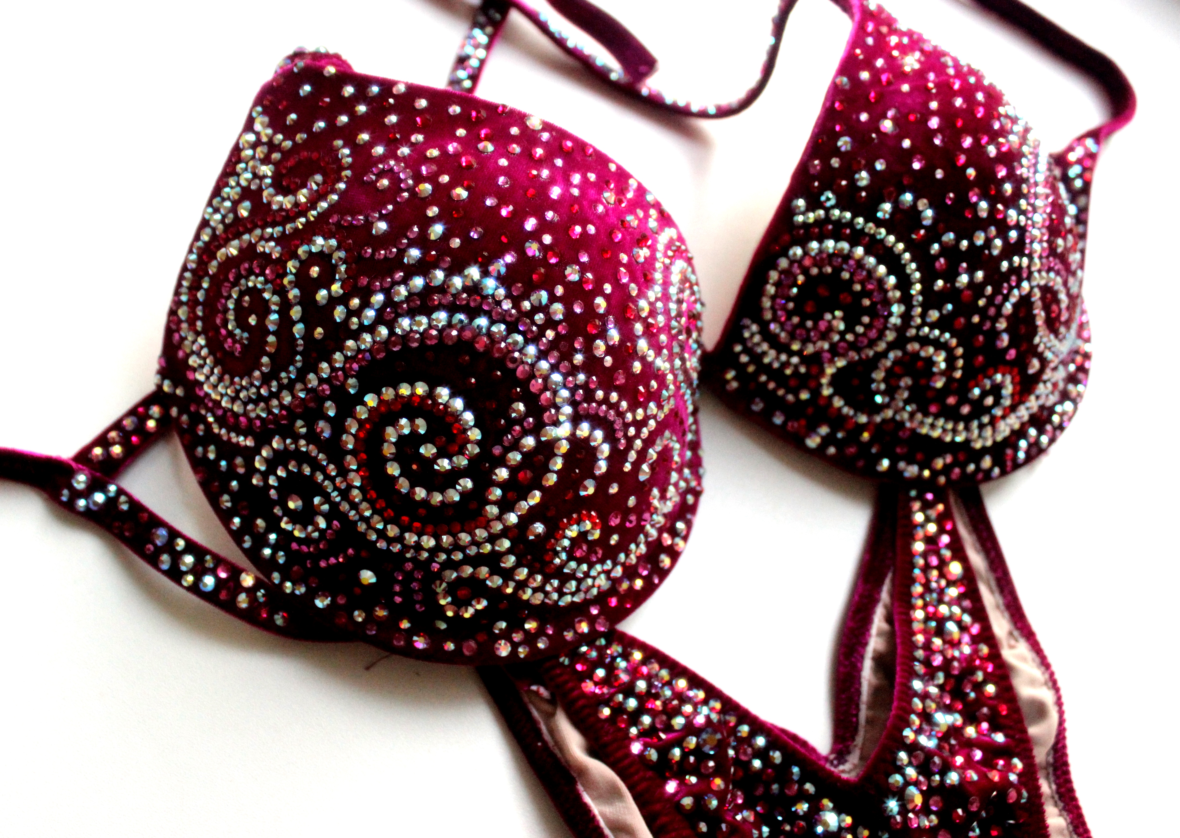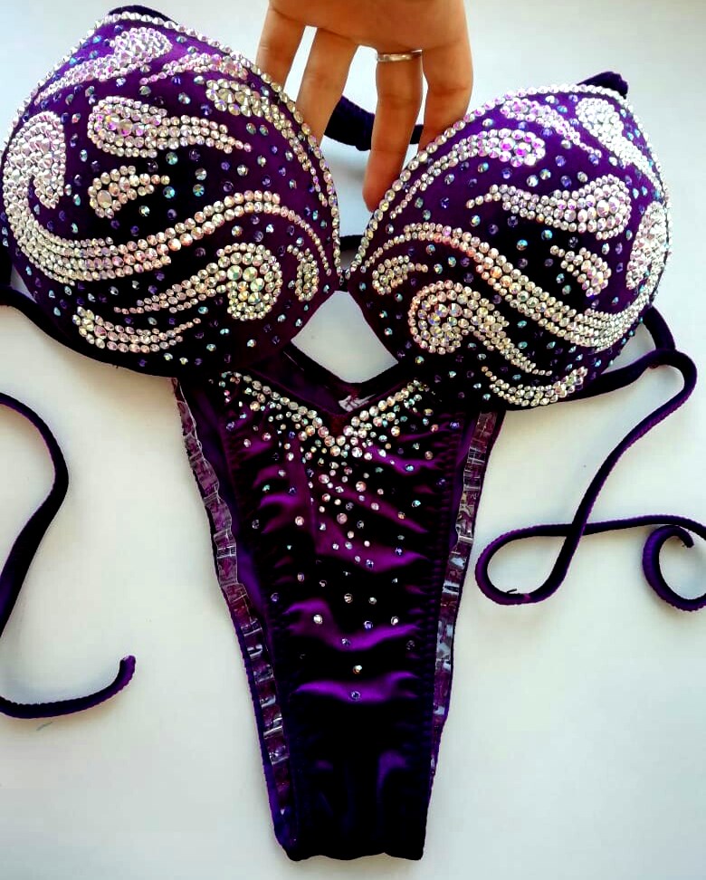 Купальник инкрустирован стразами Preciosa и стразами с гранкой Swarovski, можно скорректировать под купальник для БОДИФИТНЕСА