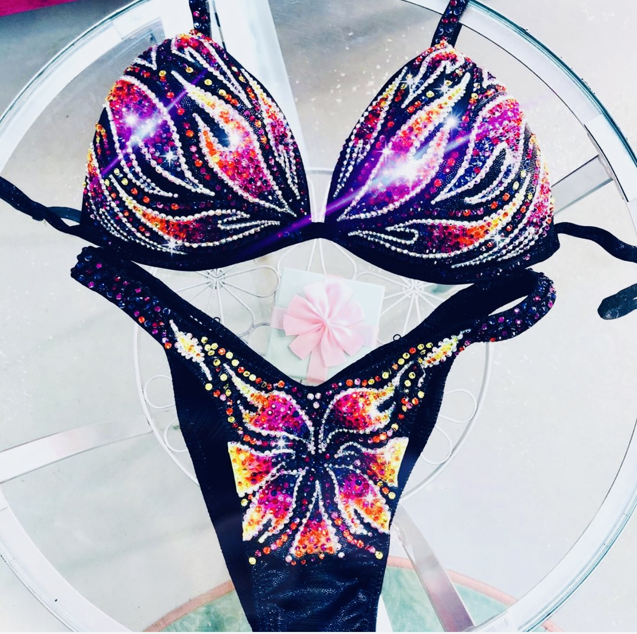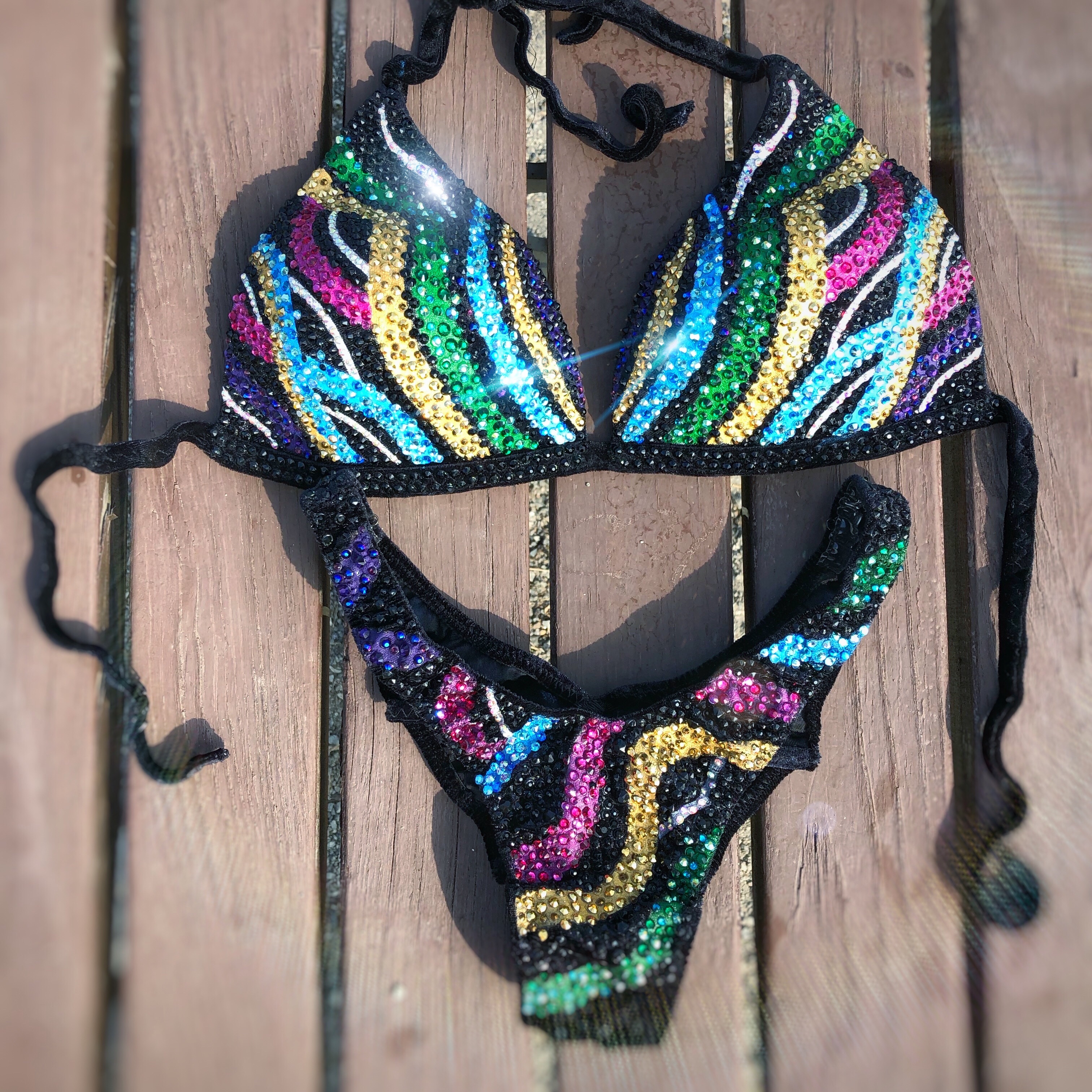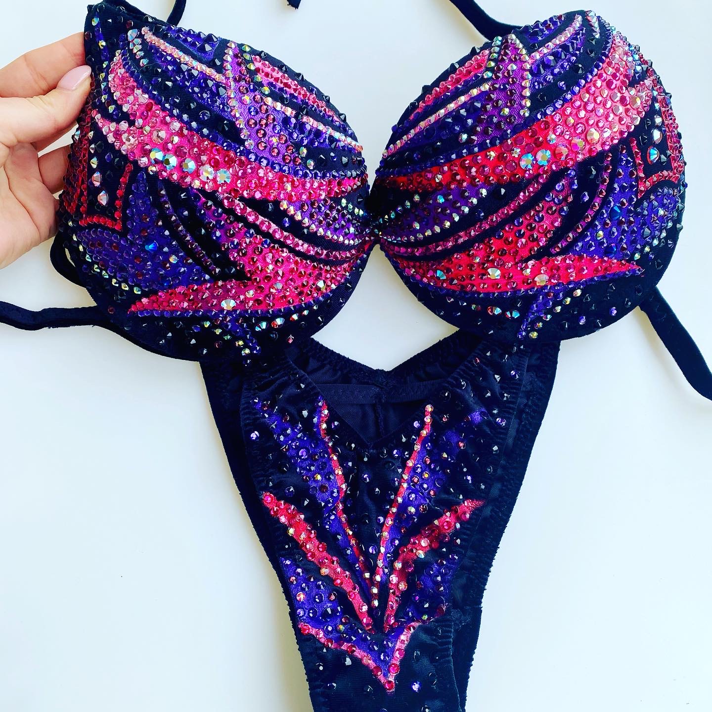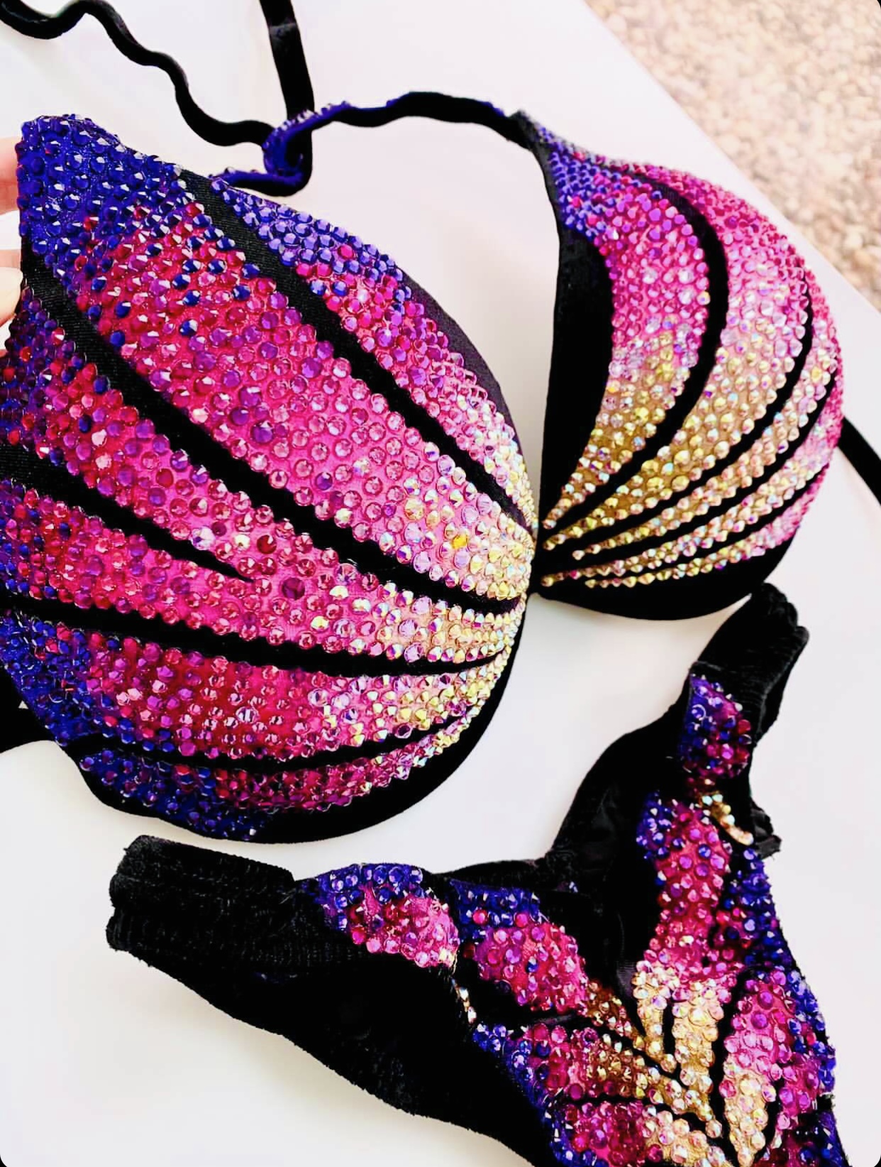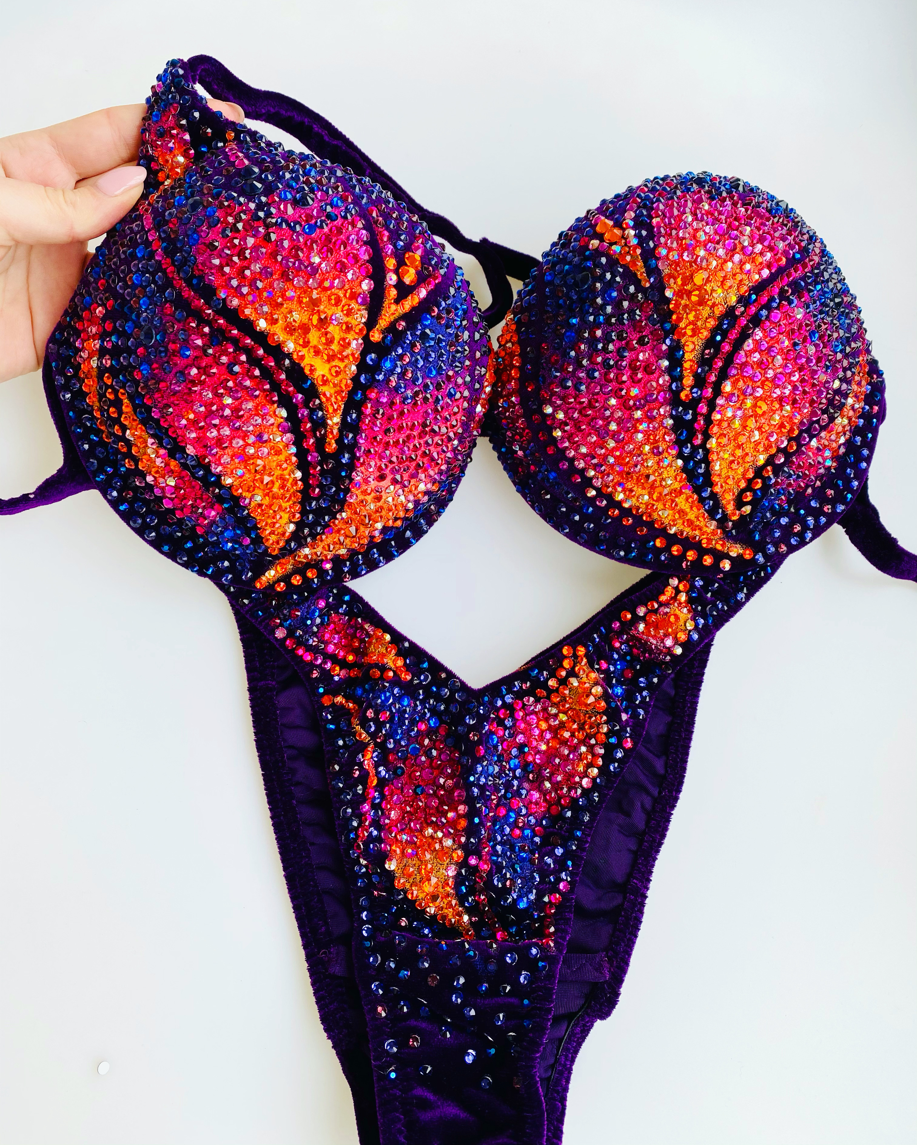 Купальник инкрустирован стразами Preciosa и стразами с гранкой Swarovski, можно скорректировать под купальник для БОДИФИТНЕСА